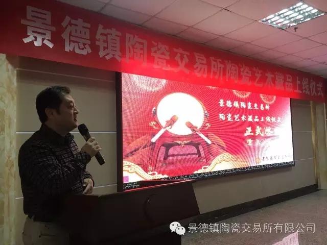 2016年11月15日,微風拂面,細雨蒙蒙,伴隨著一陣陣清脆的鑼聲,景德鎮陶瓷交易所在會展大廳隆重舉行了第六批藏品上線儀式,此次發行機構為北京時代新藝雕塑設計有限責任公司。到場的領導有景德鎮陶瓷交易所執行董事周雪松、北京時代新藝雕塑設計有限公司總經理胡宗元、安徽省書協副主席王亞洲、副總經理胡攀、市場部經理劉輝、財務部經理徐東平以及景德鎮市高級陶瓷工藝師馬易柱,在此大家共同見證了陶交所這一激動人心的重要時刻。