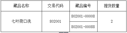 2018016關于交易藏品《七葉荷口洗》提貨公告